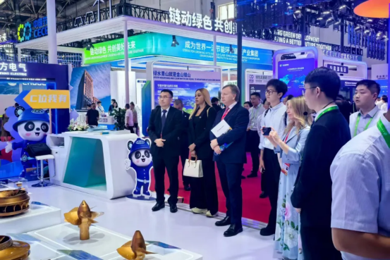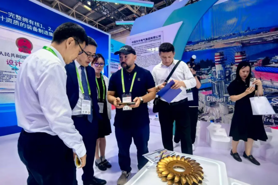在人生就是搏集团展台,自主研制的G50燃机、高端水电转轮、26兆瓦级海上风电机组、12000米特深井智能钻机、海水制氢平台“东福一号”、300千瓦组串式光伏逆变器、氢能燃料电池等创新链产品模型集中亮相,吸引了众多专业观众驻足参观。
